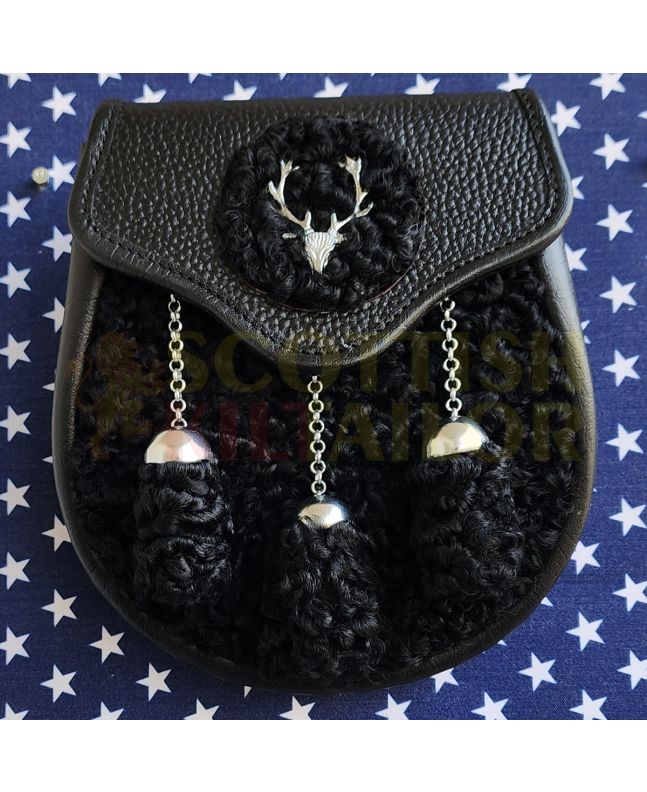 Black Sheep Fur Sporran Premium Design Chrome Finish Chain