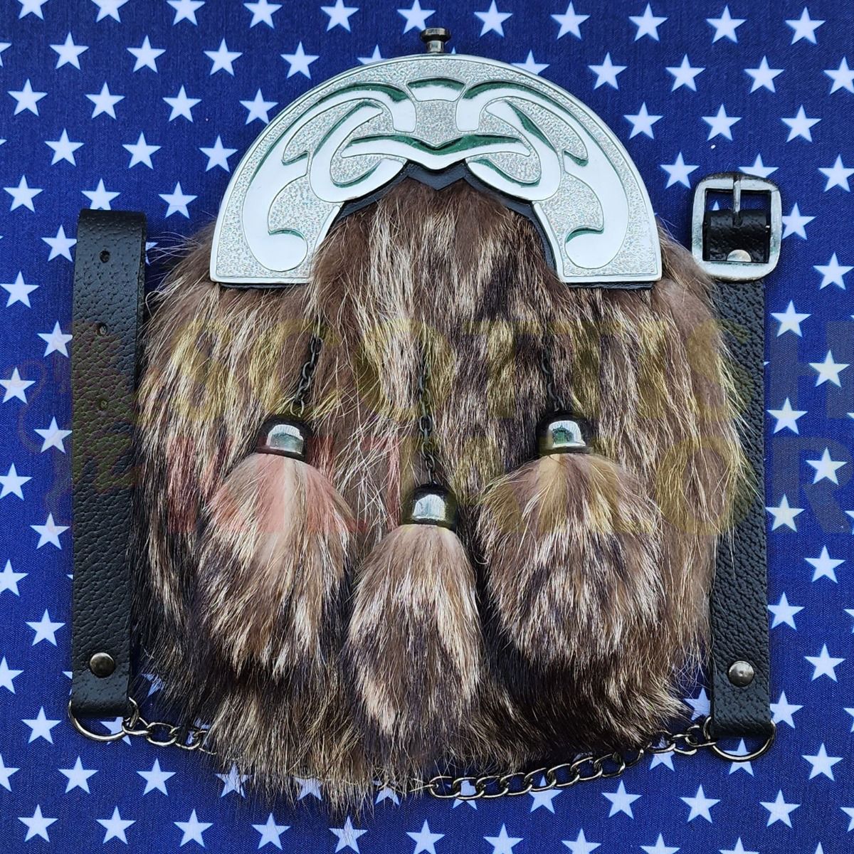 Scottish Men Full Dress Kilt Sporrans Sporran with Adjustable Leather Strap & Chain Handmade High-Quality Real Leather Wedding outfit or Formal event or simply a gift to someone special Made By Scottish Kilt Tailor