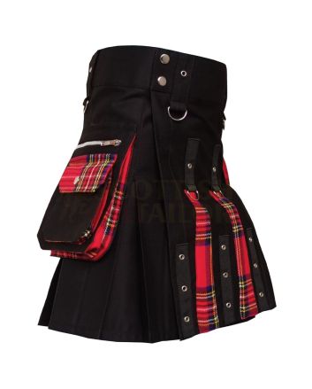 Black With Royal Stewart Tartan Hybrid KiltSpecial Price $69.00 Regular Price $100.00 -
