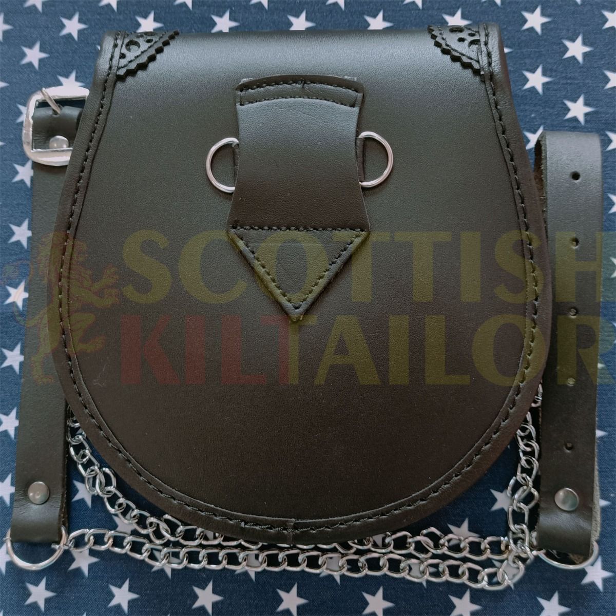 Scottish Men Full Dress Kilt Sporrans Sporran with Adjustable Leather Strap & Chain Handmade High-Quality Real Leather Wedding outfit or Formal event or simply a gift to someone special Made By Scottish Kilt Tailor