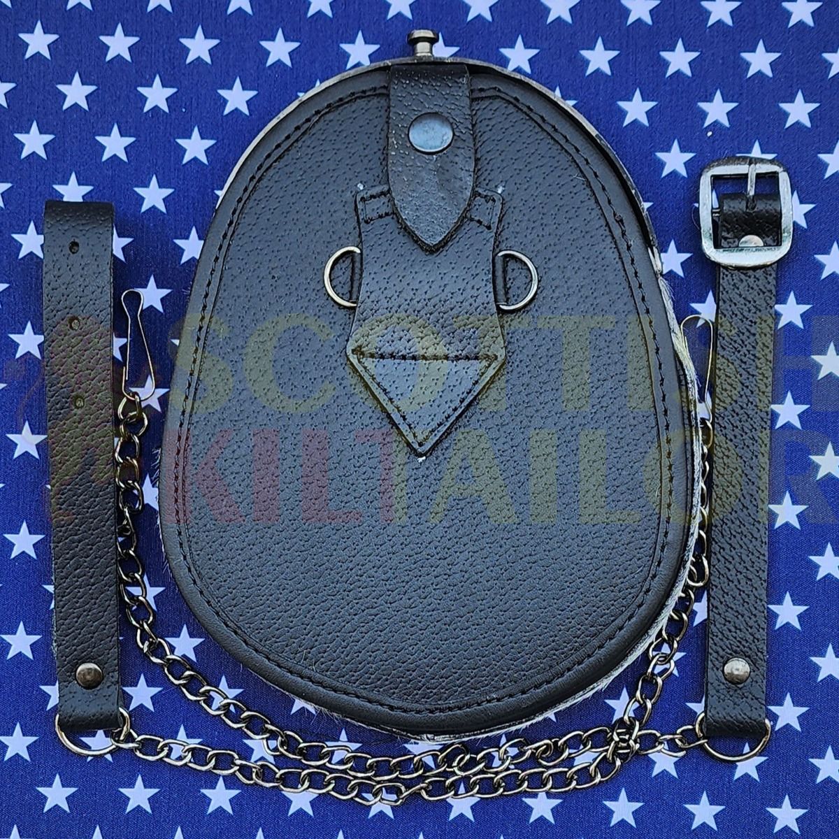 Scottish Men Full Dress Kilt Sporrans Sporran with Adjustable Leather Strap & Chain Handmade High-Quality Real Leather Wedding outfit or Formal event or simply a gift to someone special Made By Scottish Kilt Tailor